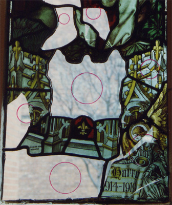 Serious damage to lower window following